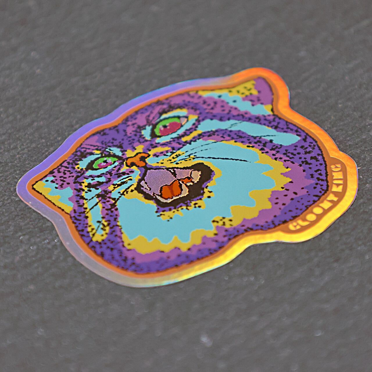 ホログラムステッカーです。 イケてる表情とカラーリングのマヌルネコ。 【サイズ】縦4.5cm×横5cm。 発送はクリックポストにてお送りします。